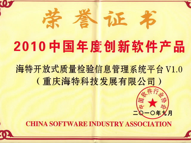 2010年9月3日,“2010中國軟件產業發展暨企業創新高峰會”在南京金陵會議中心揚子廳舉行。我公司“海特開放式質量檢驗信息管理系統平臺(TIS)V1.0”在此次會議上獲得了中國十大創新軟件產品的殊榮。